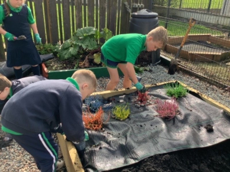 The eco school committee have been very busy designing and planting a sensory garden. They harvested a few vegetables, added new soil to the planters and began to plant our colourful plants. We are well on the way to achieve our eco goals. #greenflag